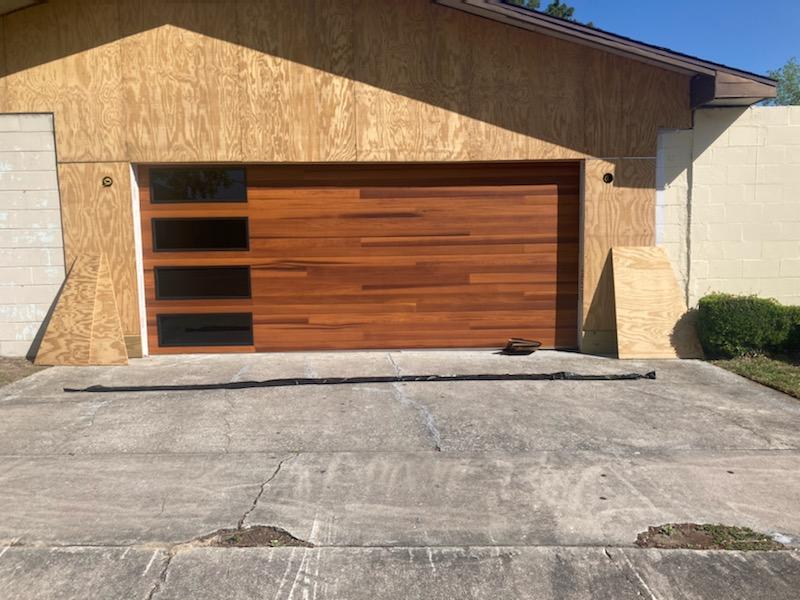Our customer was remodeling their home and asked us to install a contemporary style garage door. The Cedar color compliments the color of their home. The planks change the total look of their Pensacola FL. home to a more contemporary style.
